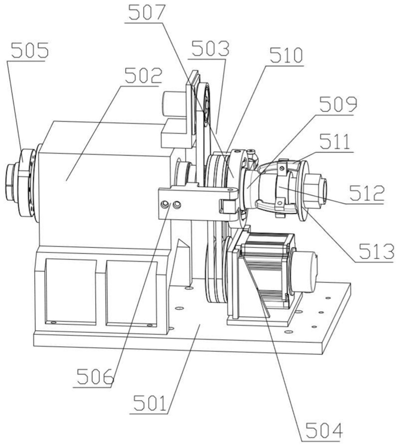 在一些實(shí)施方式中,第一夾持部包括第四安裝板、主軸箱、附加夾頭和旋轉(zhuǎn)驅(qū)動(dòng)件,主軸箱設(shè)置在第四安裝板上,主軸箱遠(yuǎn)離卡盤的一側(cè)設(shè)有附加夾頭,旋轉(zhuǎn)驅(qū)動(dòng)件驅(qū)動(dòng)主軸箱。