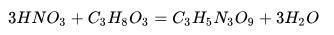 3nHNO3+ [C6H7O2(OH)3]n——→ [C6H7O2(O-NO2)3]n+ 3nH2O