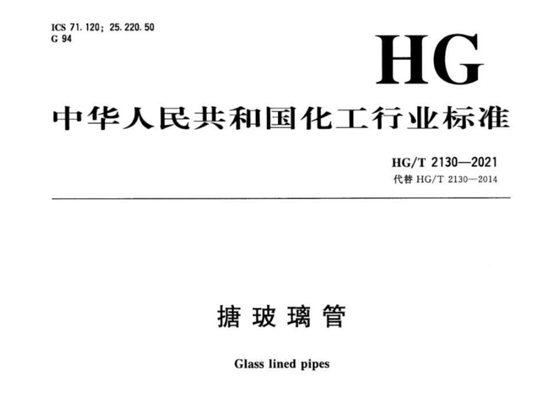 中華人民共和國(guó)化工行業(yè)標(biāo)準(zhǔn)HG/T 2130-2021搪玻璃管 點(diǎn)擊下載搪玻璃管行業(yè)標(biāo)準(zhǔn)