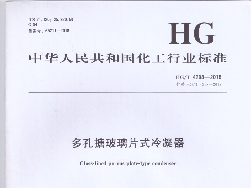 2021-01-23HG/T 4298一2018范圍,本標(biāo)準(zhǔn)規(guī)定了多孔搪玻璃片式冷凝器的型式、基本參數(shù)、主要尺寸、要求、銘牌、出廠文件、包裝、運(yùn)輸和貯存。本標(biāo)準(zhǔn)適用于器內(nèi)設(shè)計(jì)壓力大于-0.1MPa、小于0.25MPa ,夾層內(nèi)設(shè)計(jì)壓力小于或等于0.35MPa ,冷凝器面積3㎡~ 60㎡,器內(nèi)工作溫度0℃~200℃ ,夾層內(nèi)工作溫度小于或等于95℃的多孔搪玻璃片式冷凝器...
