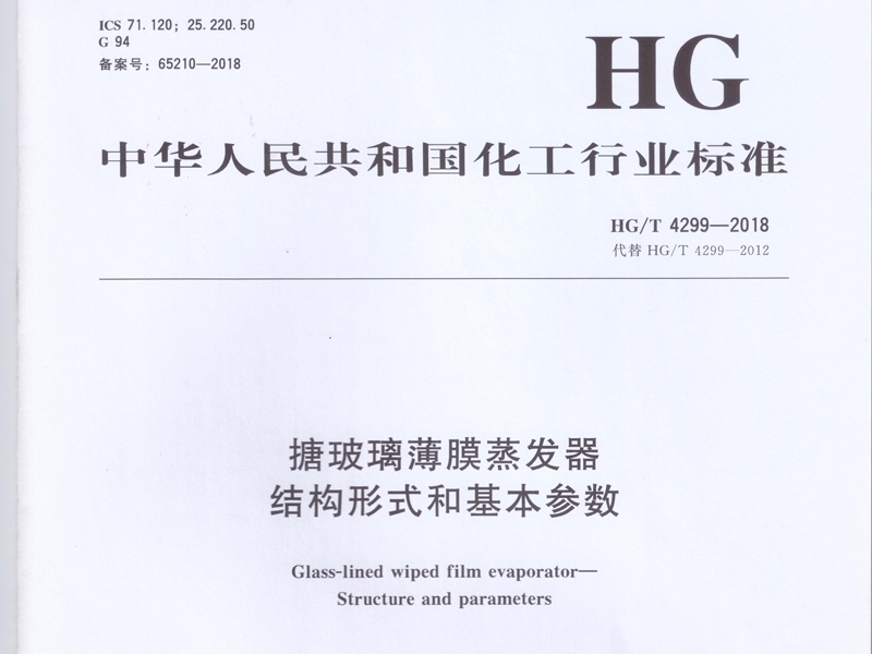 HG/T 4299-2018搪玻璃薄膜蒸發(fā)器要求及檢測標(biāo)準(zhǔn)