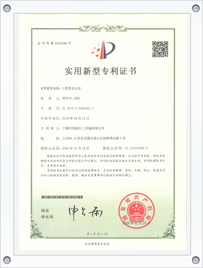 碳化硅換熱器內(nèi)測(cè)密封裝置專利證書