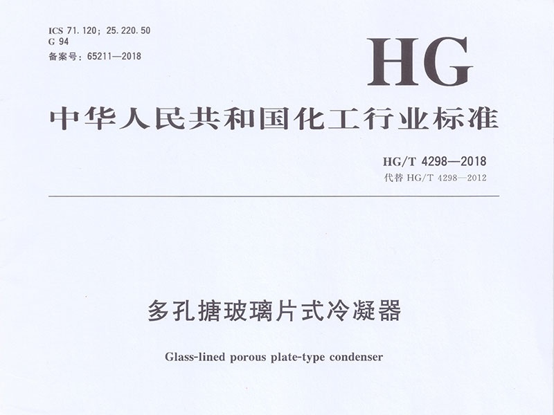 無(wú)錫錢橋化工機(jī)械有限公司參與起草中華人民共和國(guó)化工行業(yè)標(biāo)準(zhǔn)HG/T 4298-2018《多孔搪玻璃片式冷凝器》。 ...