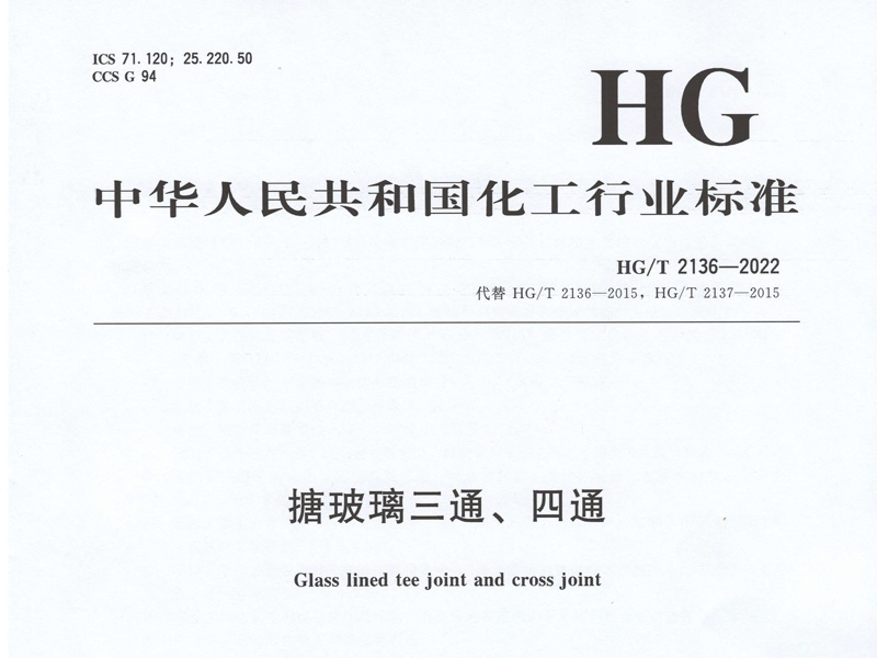 中華人民共和國化工行業(yè)標(biāo)準(zhǔn)之HG/T 2136-2022搪玻璃三通、四通,無錫市錢橋化工機械有限公司為本標(biāo)準(zhǔn)起草單位之一。 ...
